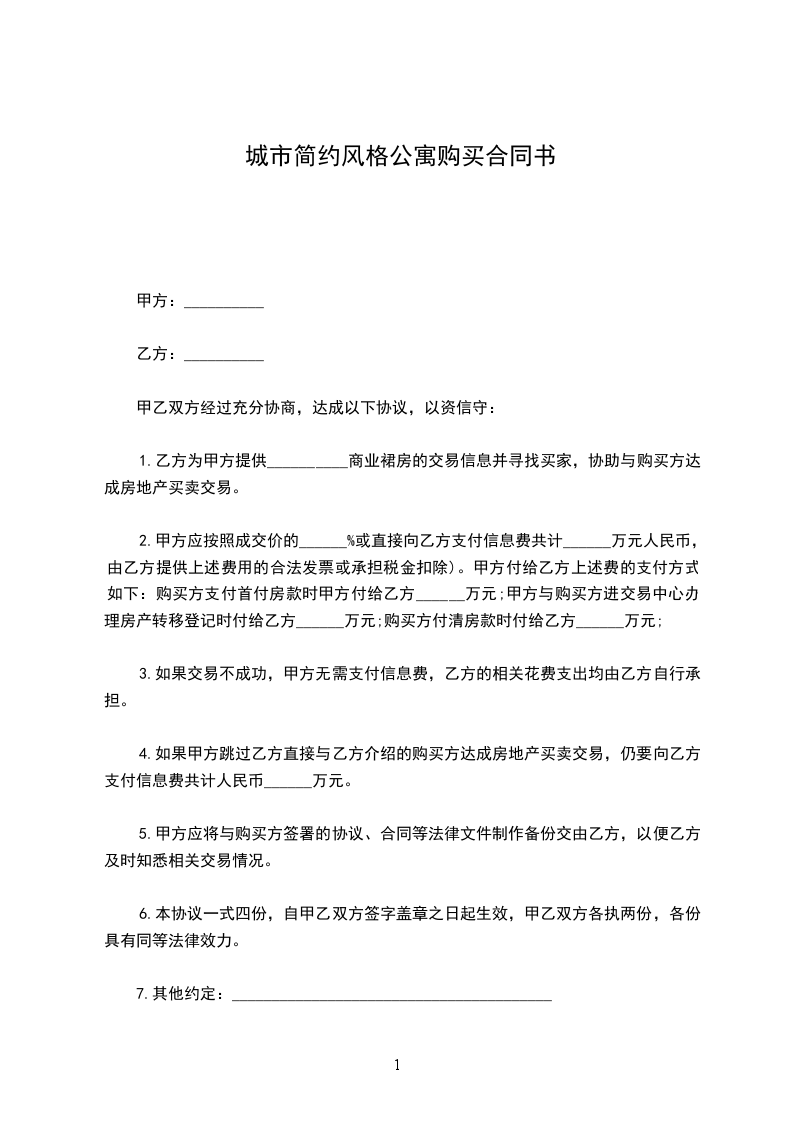 城市简约风格公寓购买合同书