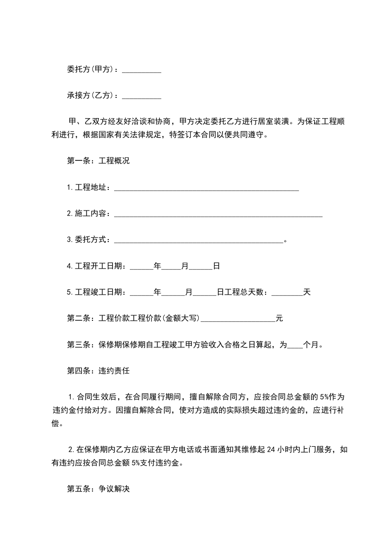 甲、乙双方经友好洽谈和协商,甲方决定委托乙方进行居室装潢。为保证工程顺利进行,根据国家有关法律规定,特签订本合同以便共同遵守。