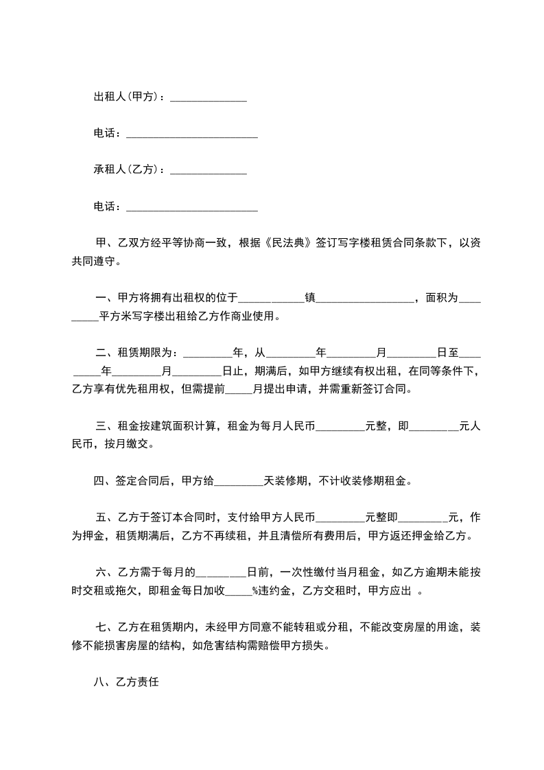 根据《中华人民共和国民法典》及相关规定,为明确出租方与承租方的权利义务关系,经双方协商一致,签订本合同。