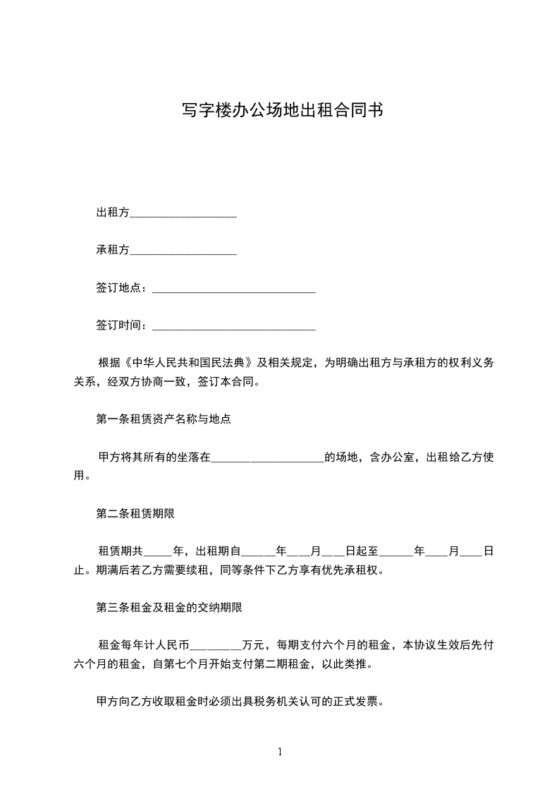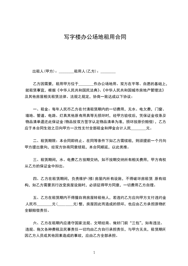 甲方将其所有的坐落在____________________的场地,含办公室,出租给乙方使用。