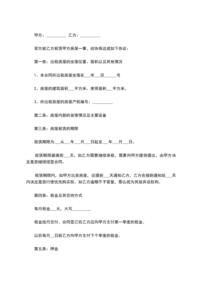 1、本合同所出租房屋坐落在___市___区______号