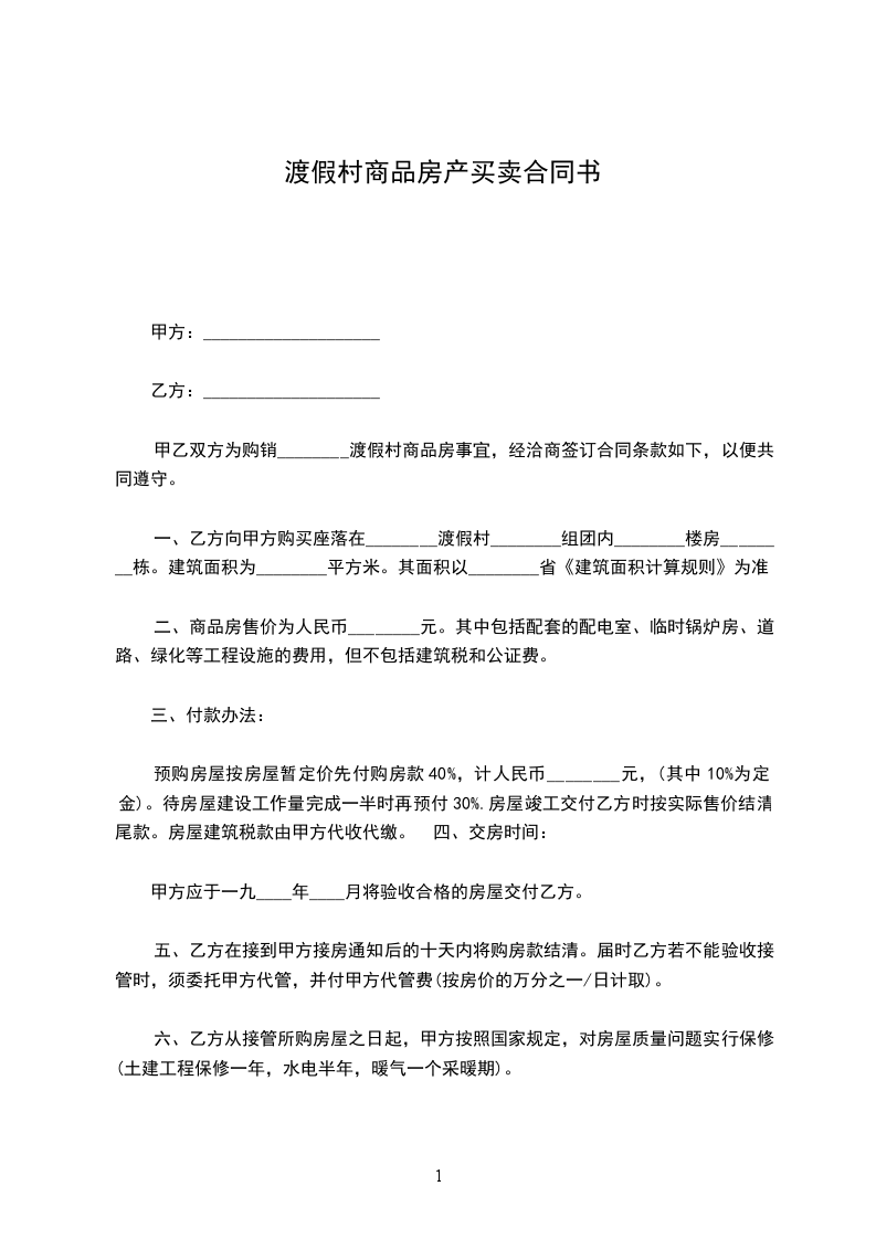 甲乙双方为购销_________渡假村商品房事宜,经洽商签订合同条款如下: