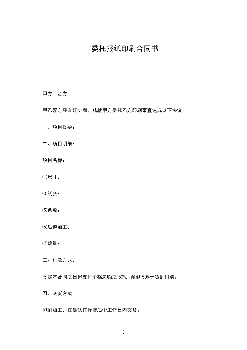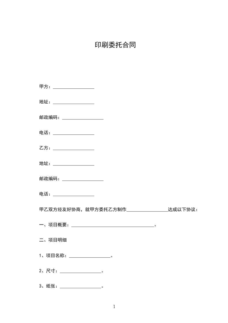 第一条:甲方委托乙方为其提供印刷品印刷及印成品服务共四项。