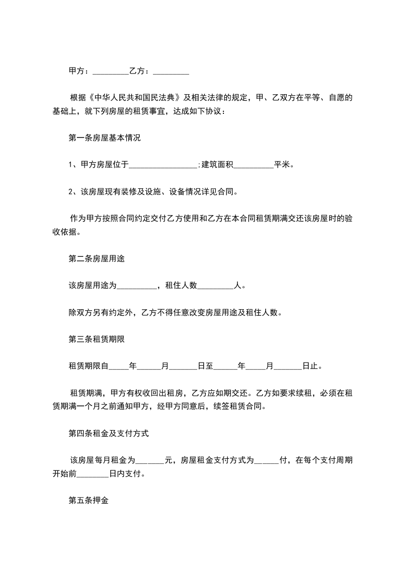 根据《中华人民共和国民法典》及相关法律的规定,甲、乙双方在平等、自愿的基础上,就下列房屋的租赁事宜,达成如下协议: