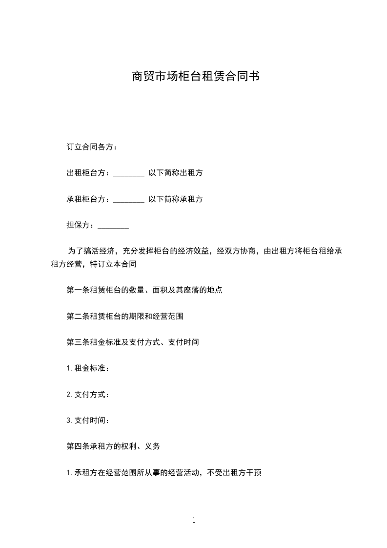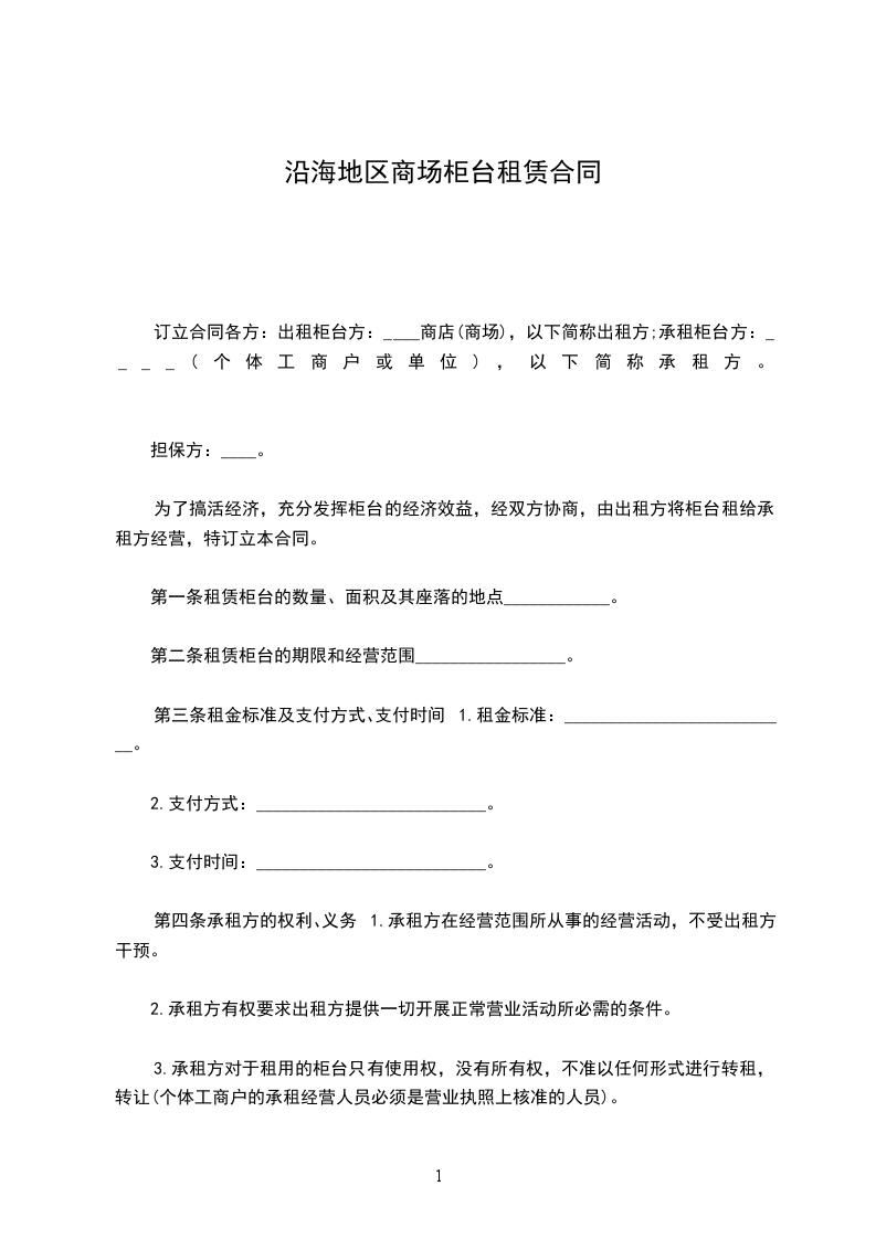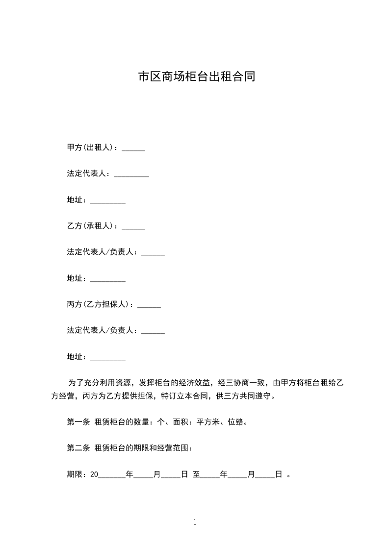 第一条租赁柜台的数量:个、面积:平方米、位臵。