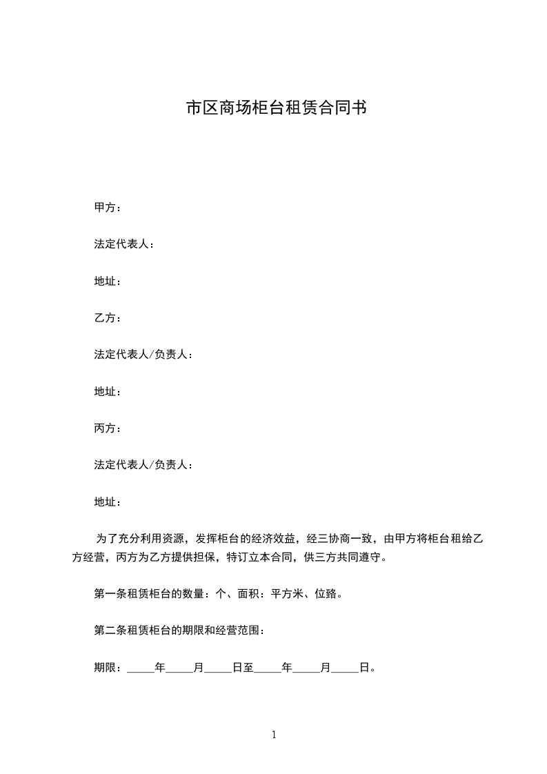 为了充分利用资源,发挥柜台的经济效益,经三协商一致,由甲方将柜台租给乙方经营,丙方为乙方提供担保,特订立本合同,供三方共同遵守。
