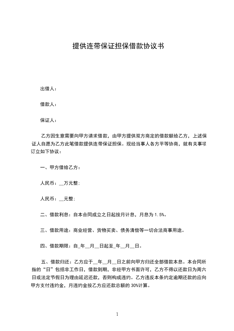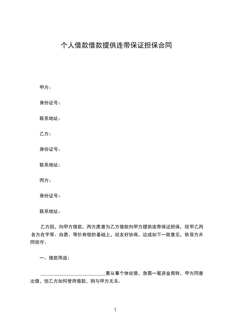 乙方因生意需要向甲方请求借款,由甲方提供双方商定的借款额给乙方,上述保证人自愿为乙方此笔借款提供连带保证担保。现经当事人各方平等协商,就有关事项订立如下协议: