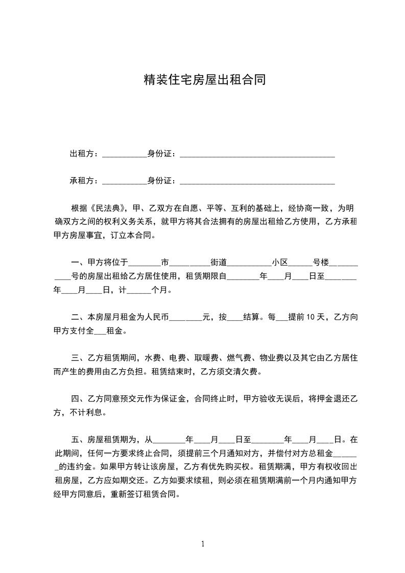 一、甲方将位于________市__________街道___________小区______号楼___________号的房屋出租给乙方居住使用,租赁期限自________年____月____日至________年____月____日,计______个月。