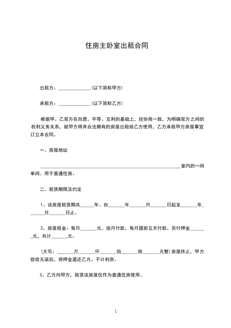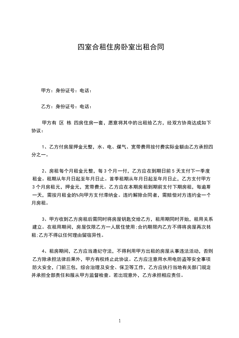 甲方有 区 栋 四房住房一套,愿意将其中的出租给乙方,经双方协商达成如下协议: