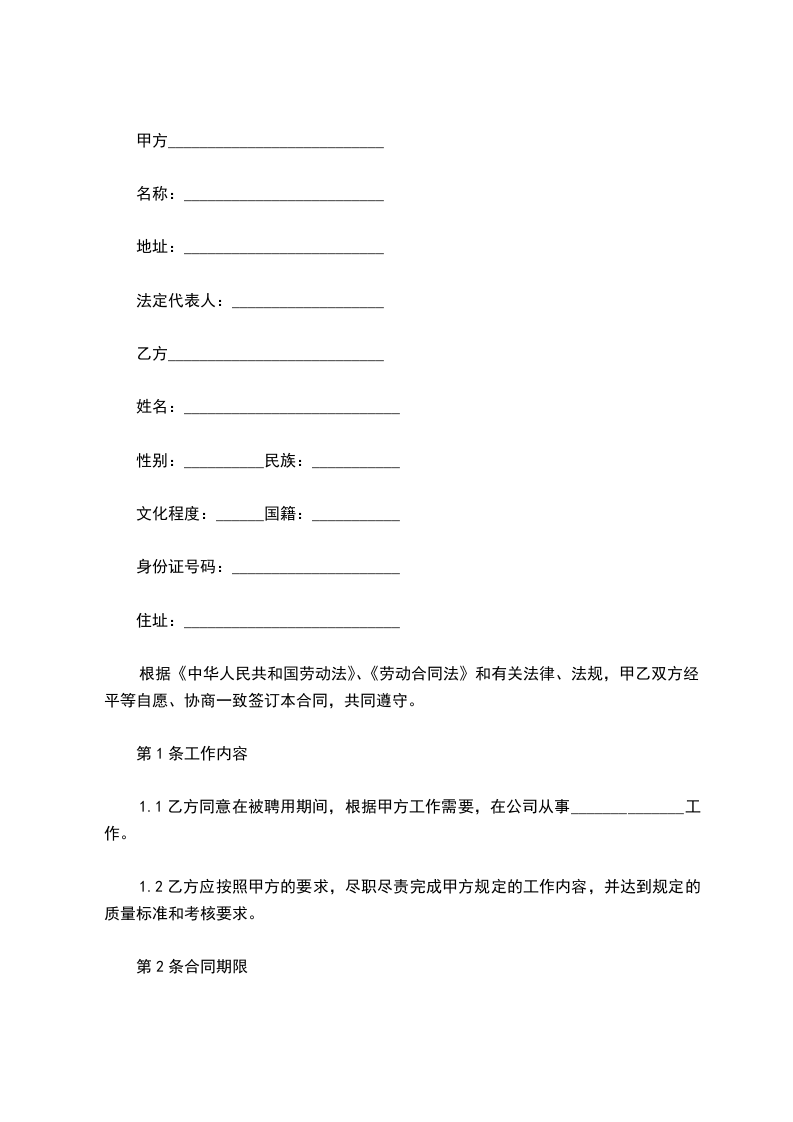 1.1乙方同意在被聘用期间,根据甲方工作需要,在公司从事______________工作。
