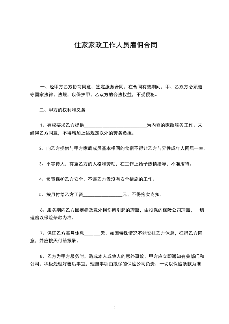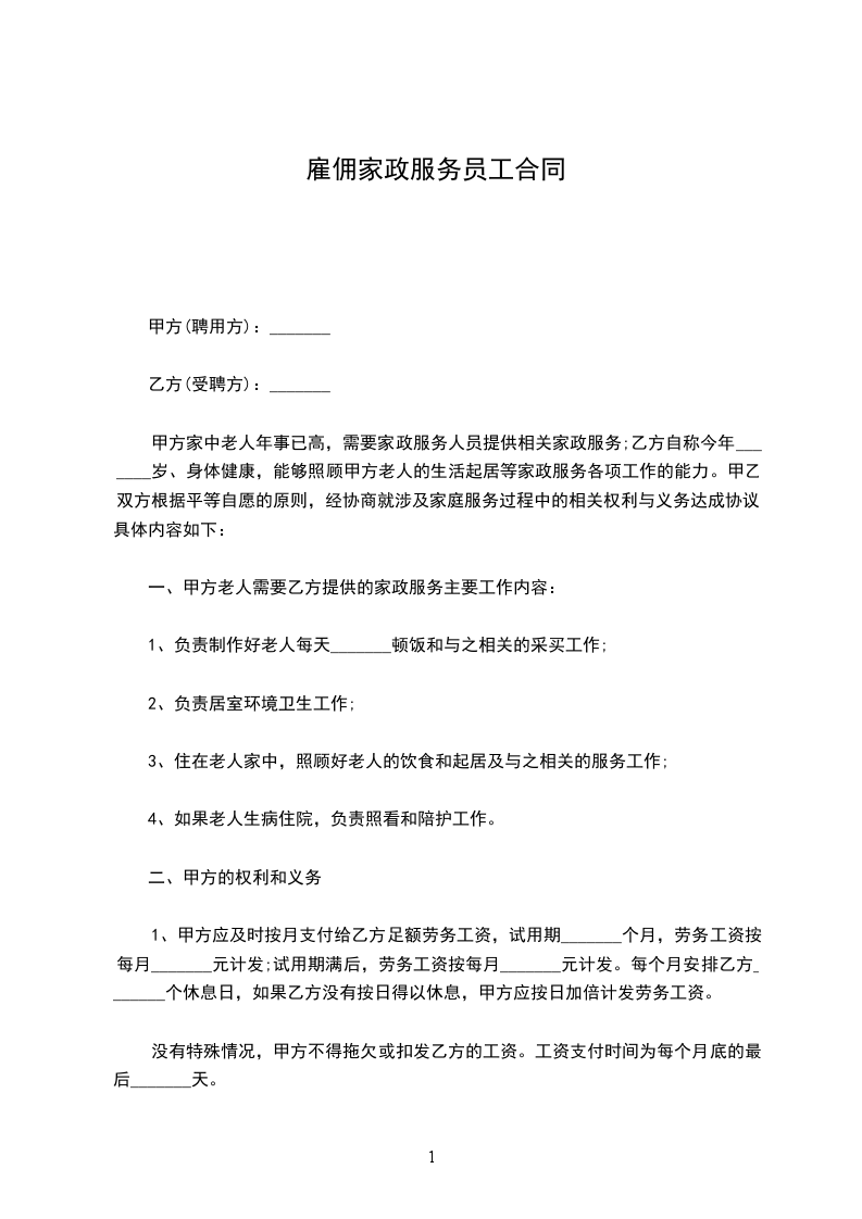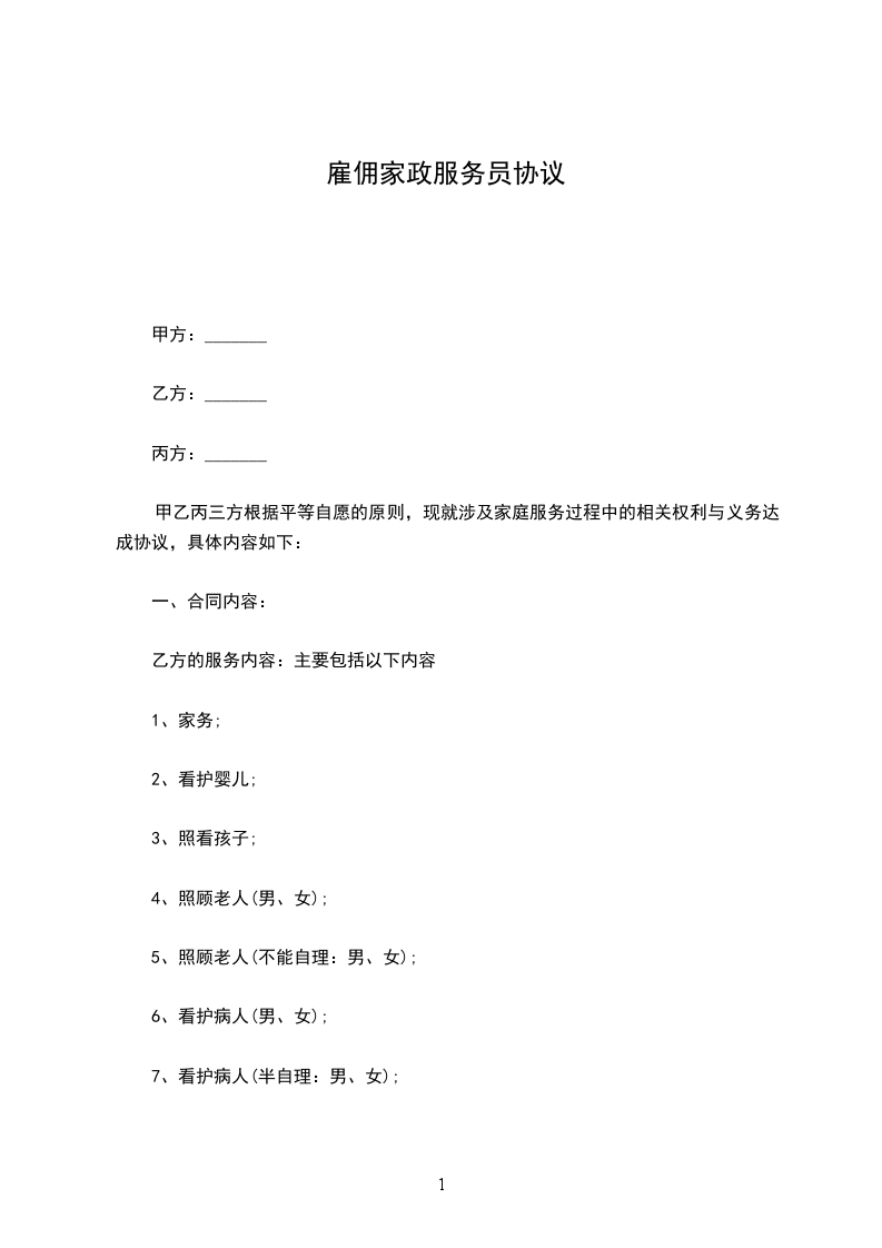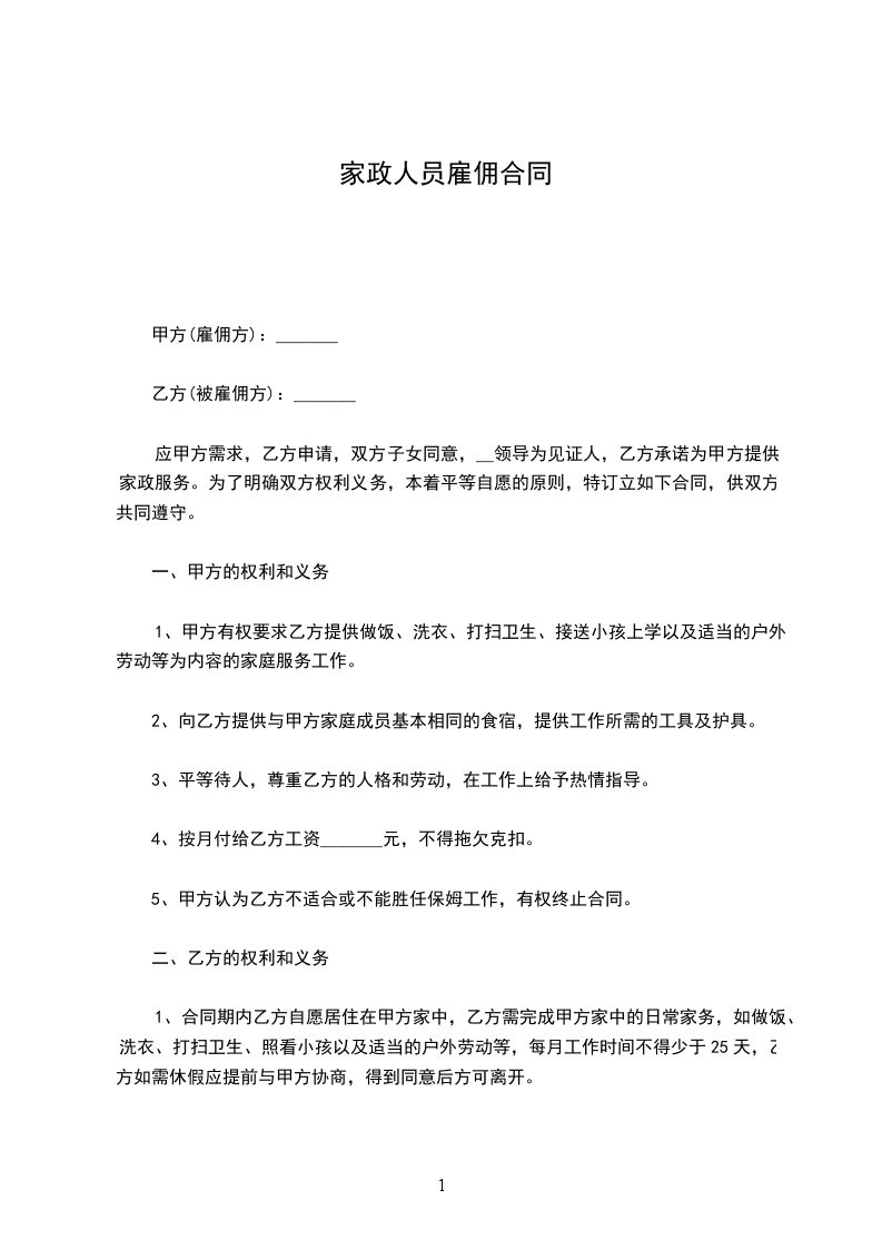 1、自愿为甲方提供________________________为内容的家庭服务工作。