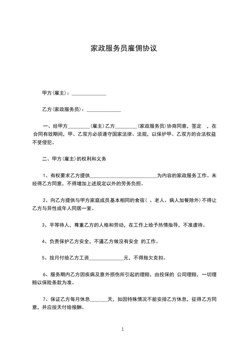 1、有权要求乙方提供___________________________为内容的家政服务工作。未经得乙方同意,不得增加上述规定以外的劳务负担。