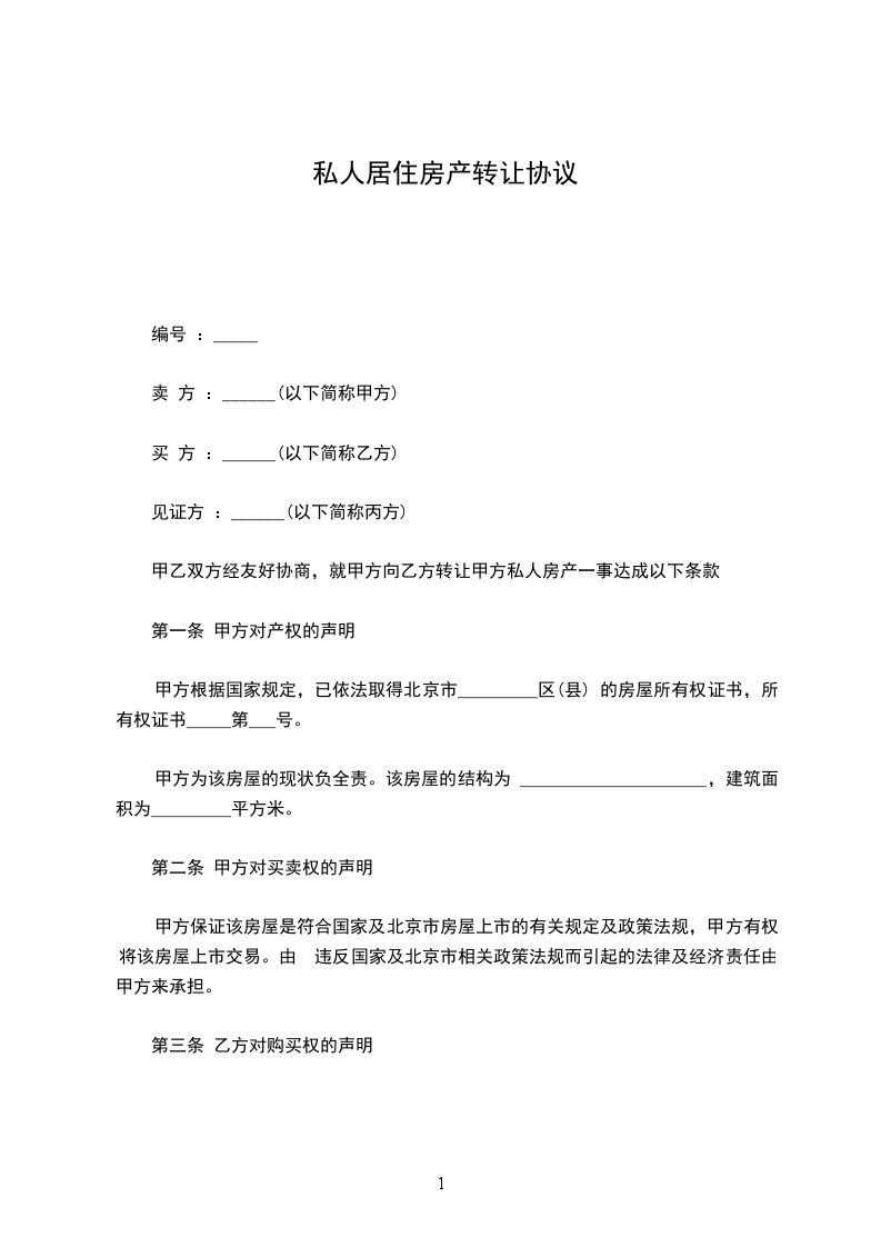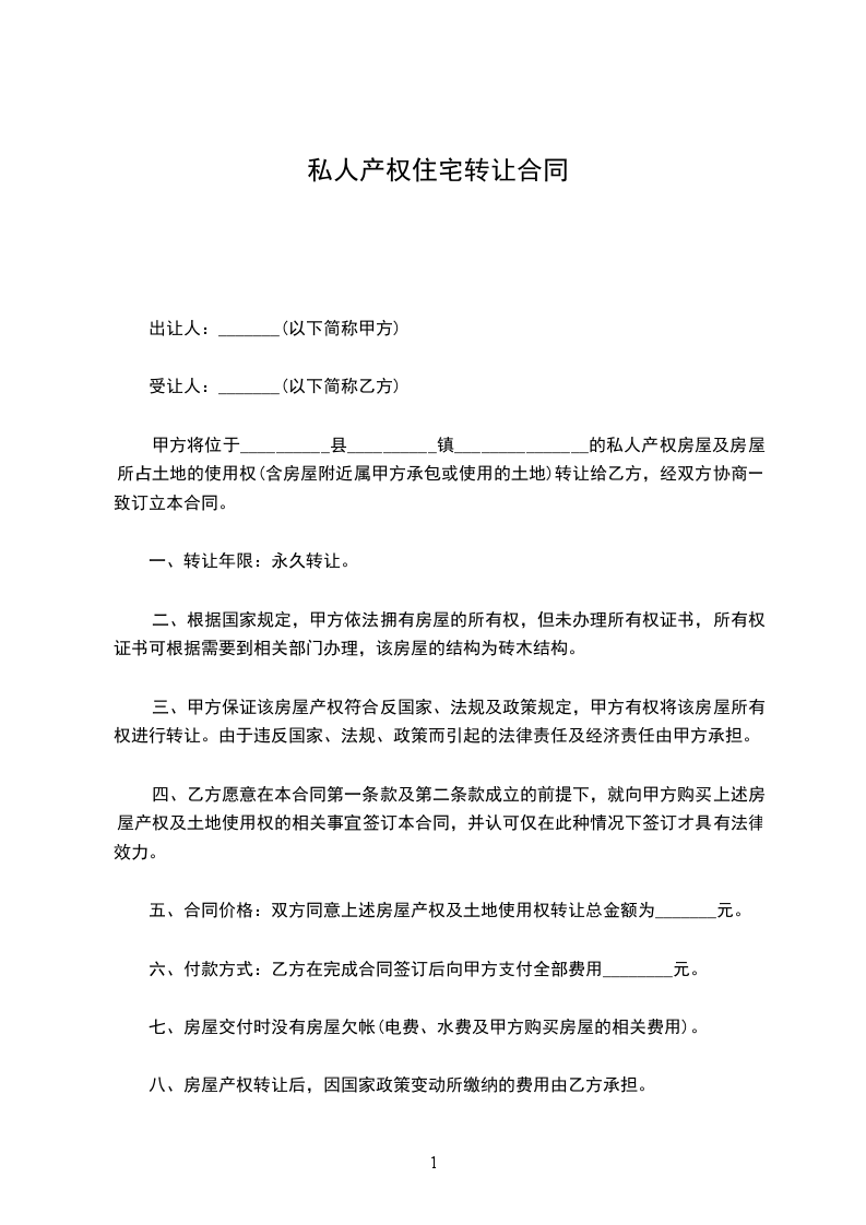 甲乙双方经友好协商,就甲方向乙方转让甲方私人房产一事达成以下条款: