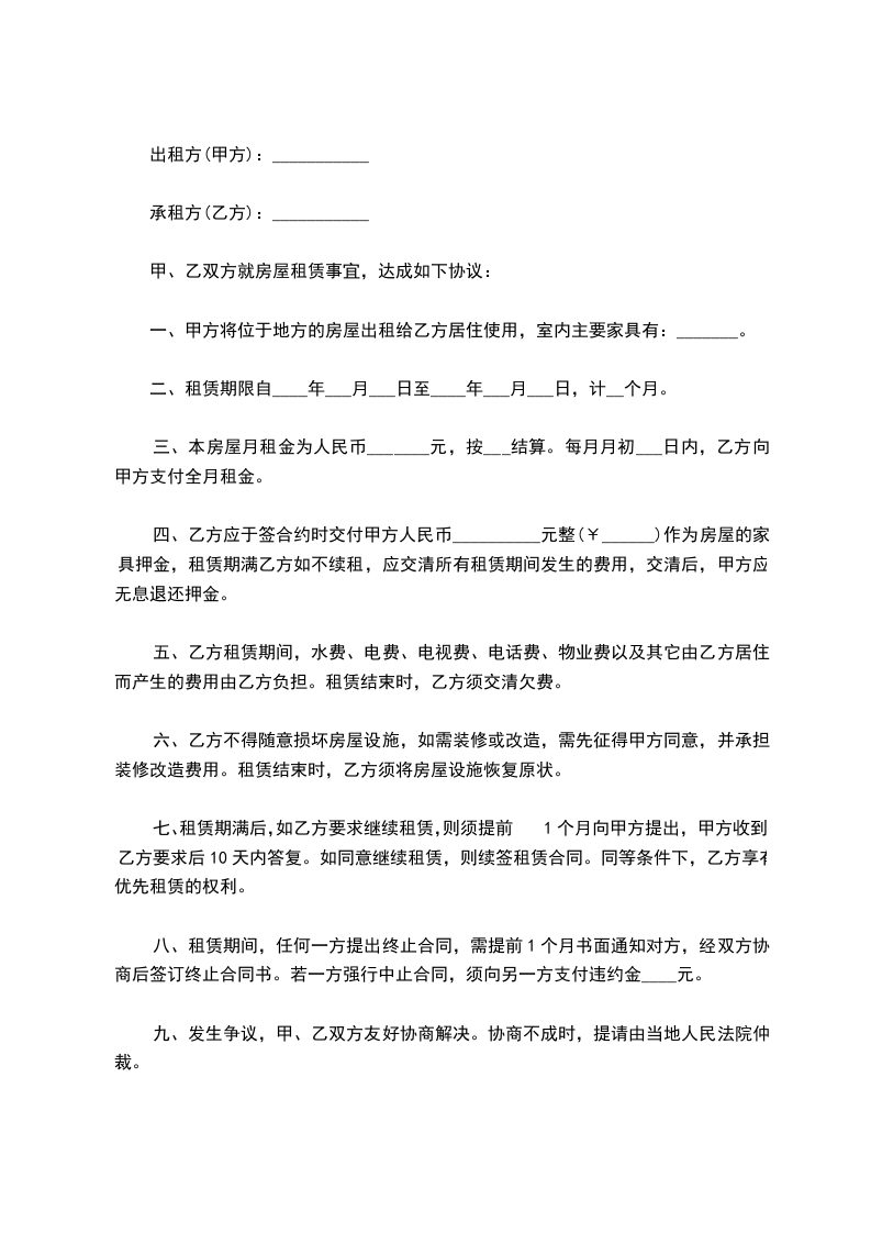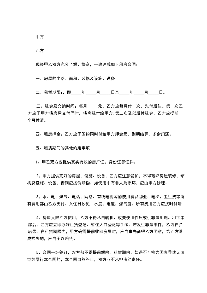 六、本合同期满,如乙方继续租用本房屋,应提前通知甲方,在同等条件下,优先租给乙方,租金重新商议可续签合同。