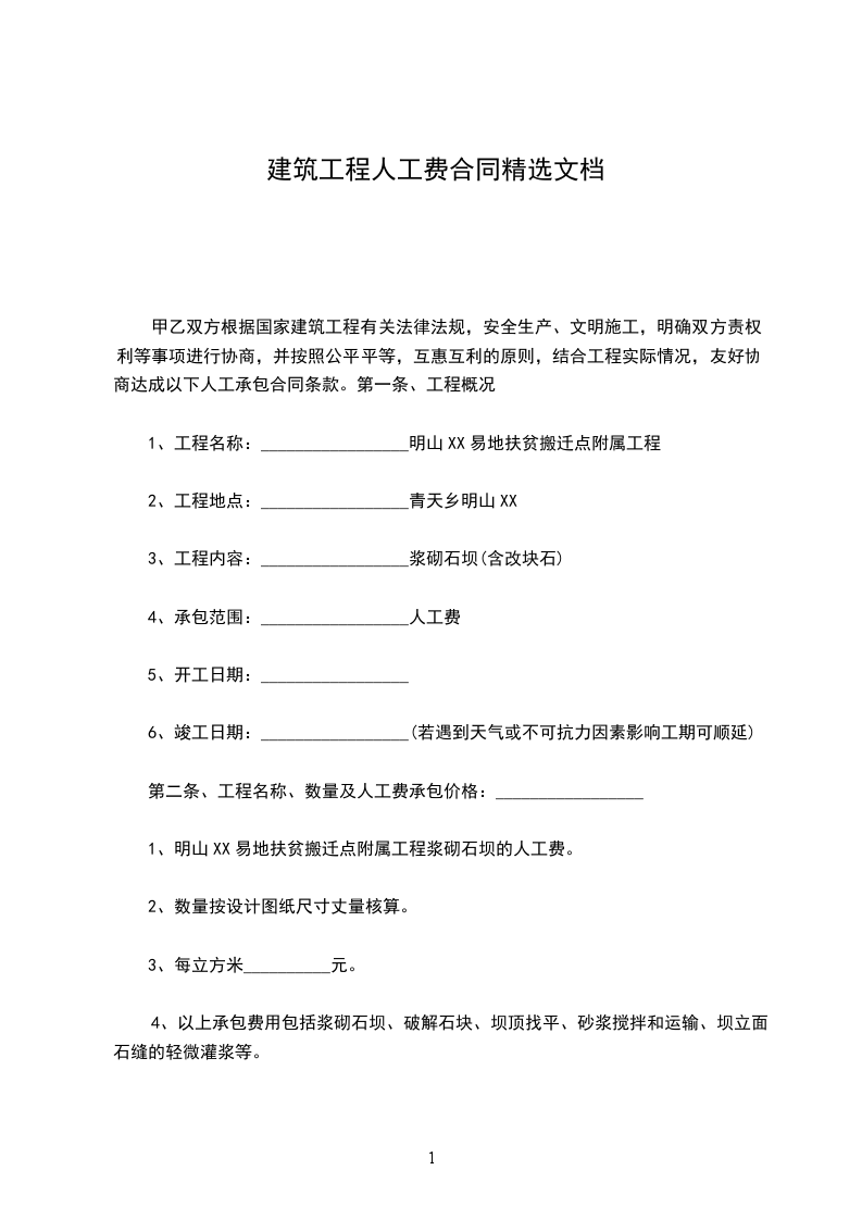 建筑工程施工人工费协议书