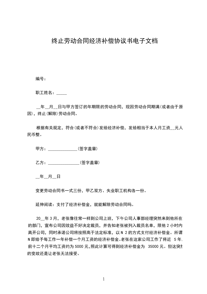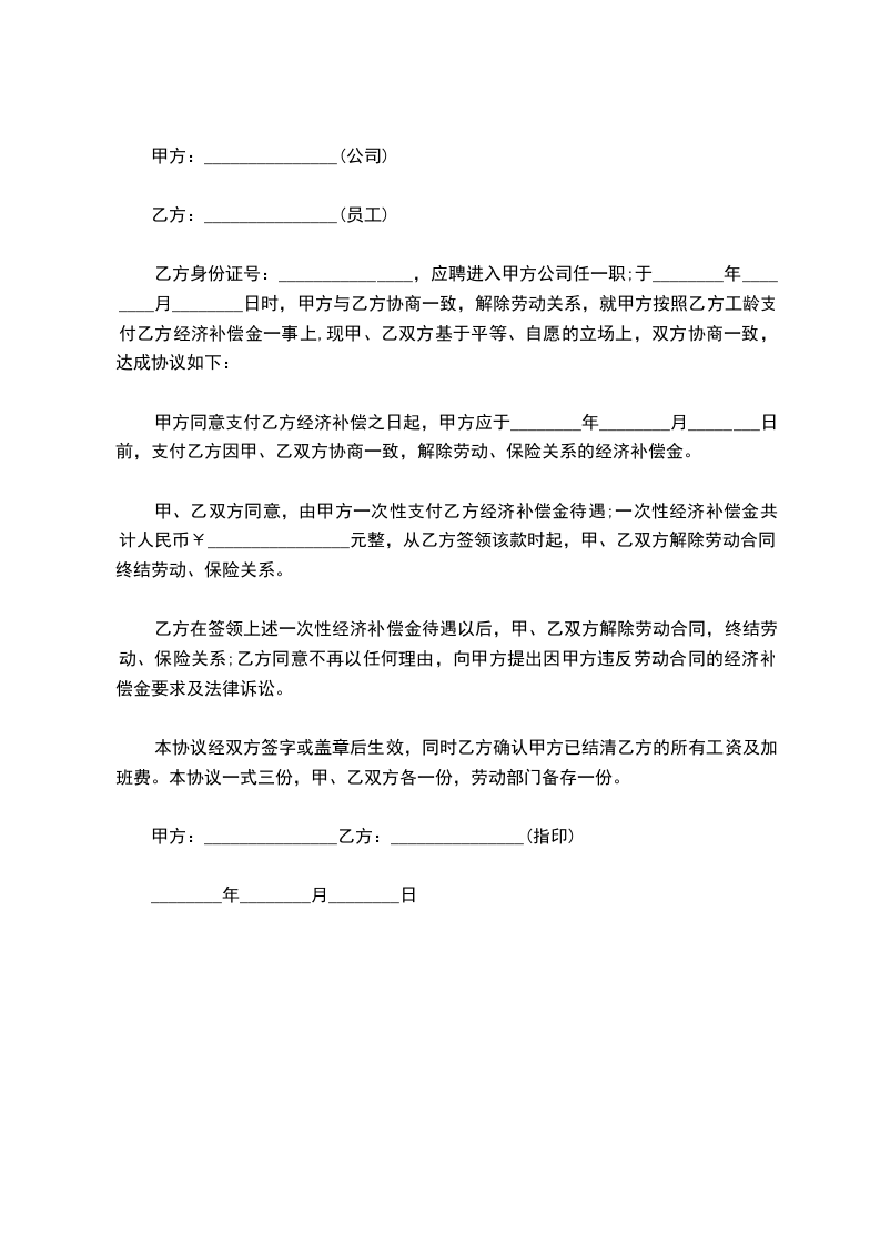 2.甲方于__年__月__日之前向乙方支付经济补偿金人民币___元。