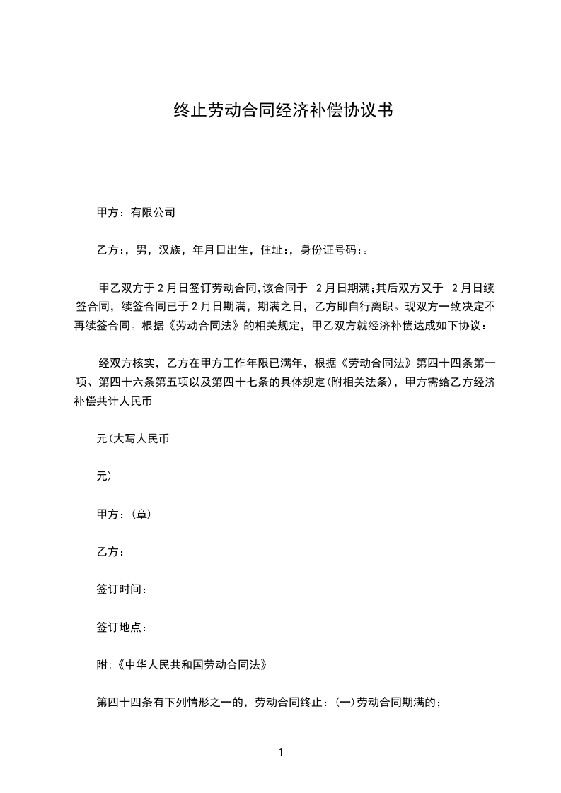 1.甲、乙双方于__年__月__日签订的《劳动合同书》及于__年__月__日签订的《劳动合同变更协议》于__年__月__日期满终止,甲乙双方确认,双方劳动关系自《劳动合同》期满之日起终止,双方之间不再续签新的《劳动合同》。