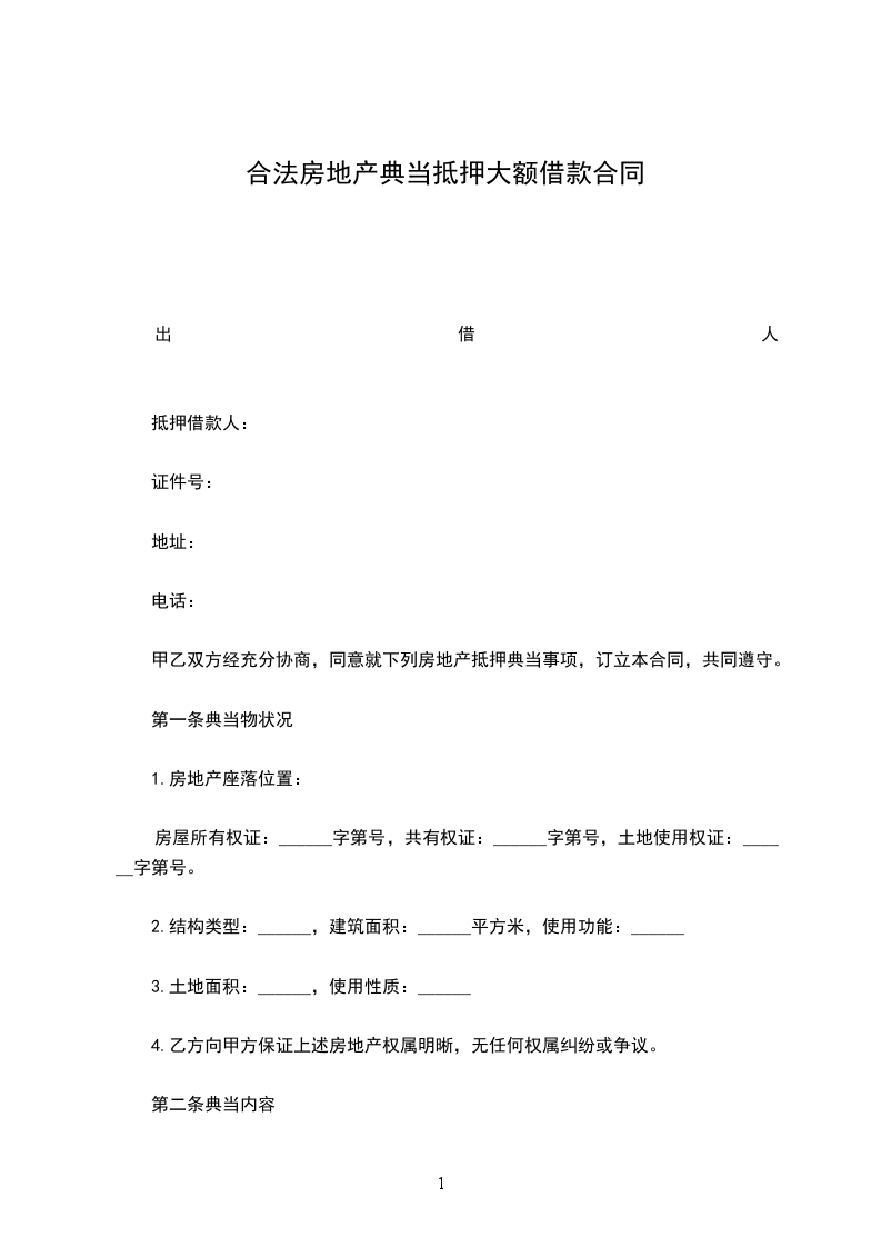甲乙双方经充分协商,同意就下列房地产抵押典当事项,订立本合同,共同遵守。