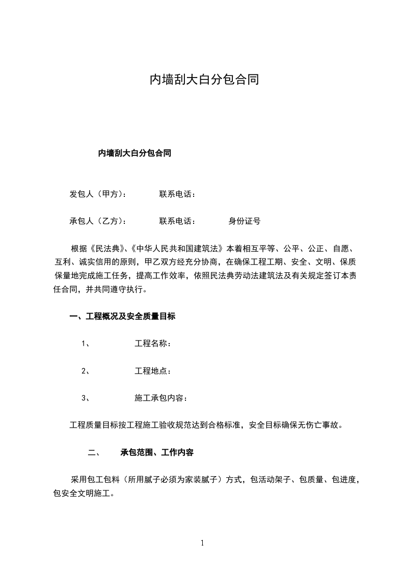 内墙刮大白分包合同