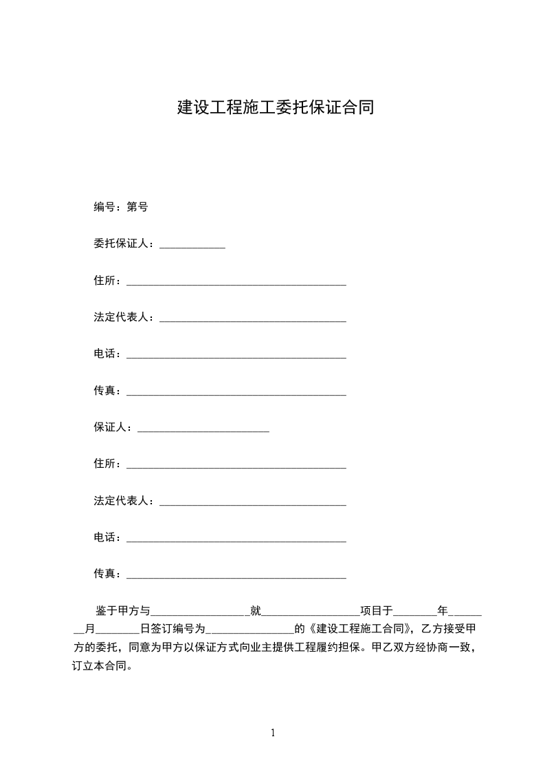 鉴于甲方与__________________就__________________项目于________年________月________日签订编号为________________的《建设工程施工合同》,乙方接受甲方的委托,同意为甲方以保证方式向业主提供工程履约担保。甲乙双方经协商一致,订立本合同。