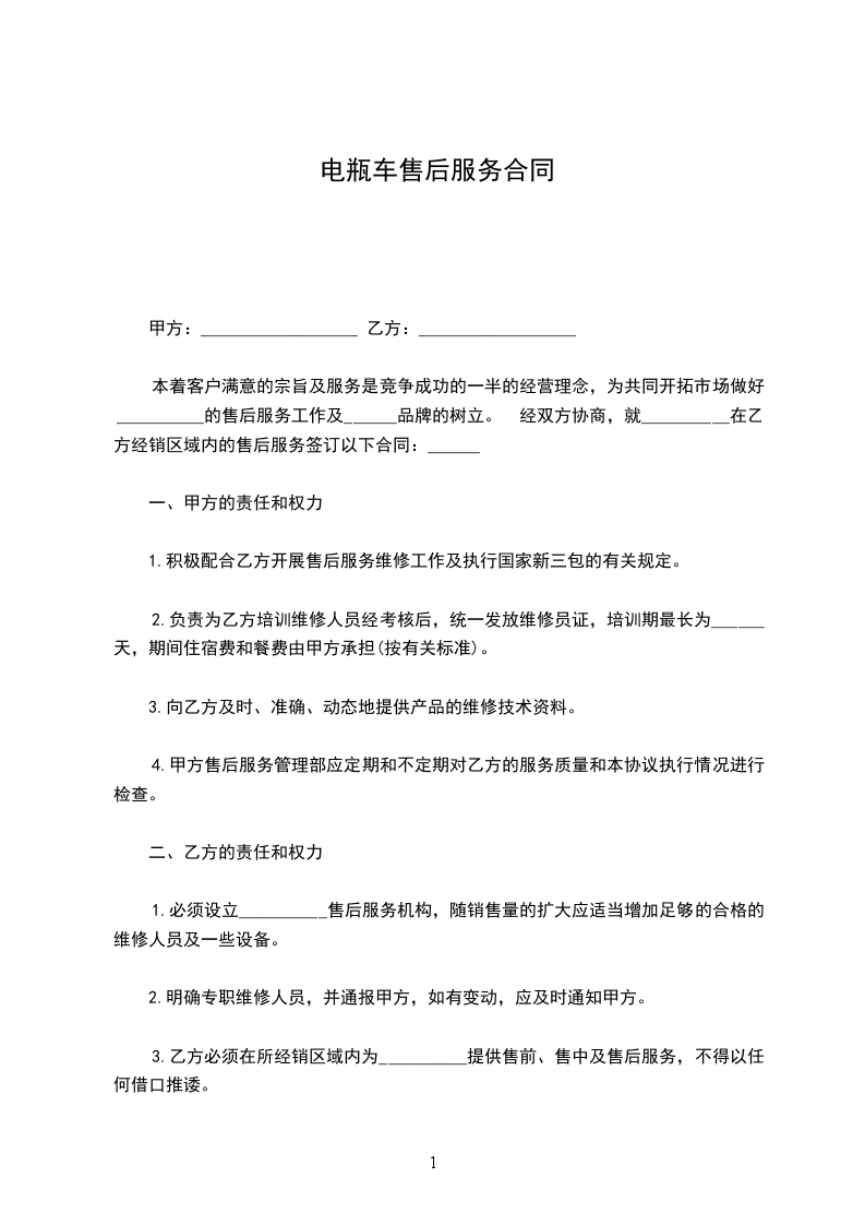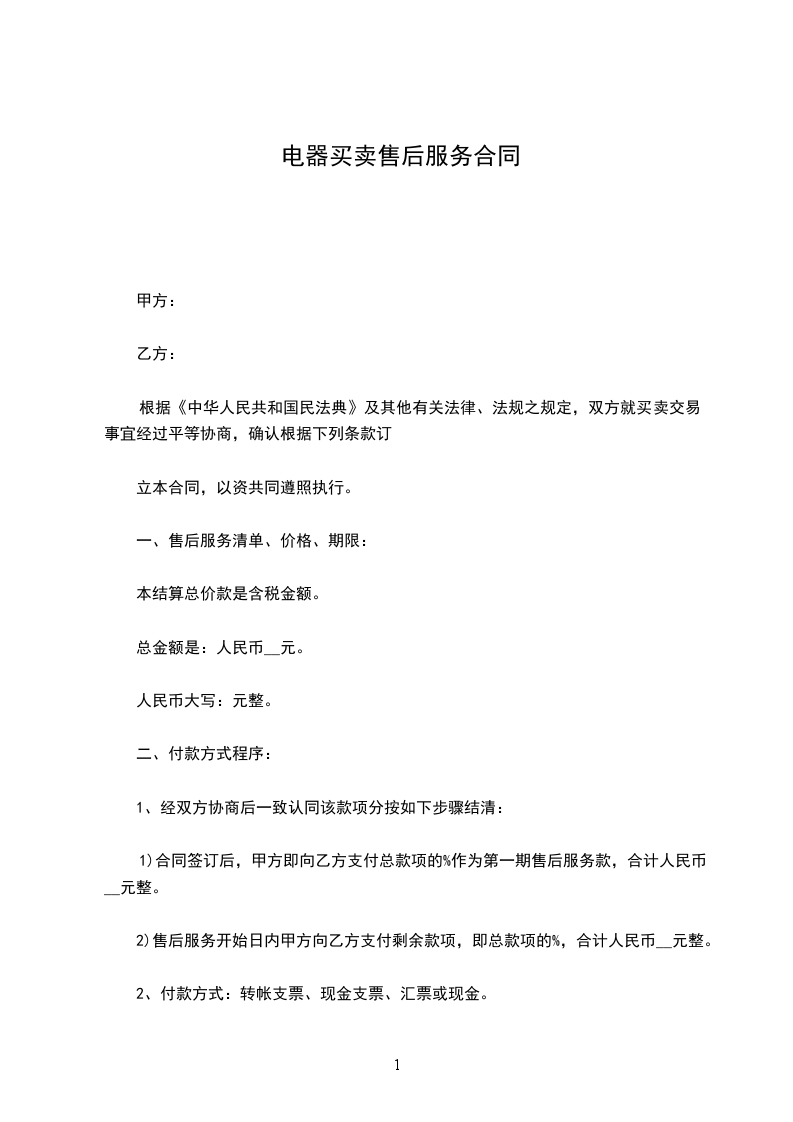 1)合同签订后,甲方即向乙方支付总款项的_____%作为第一期售后服务款,合计人民币__元整。