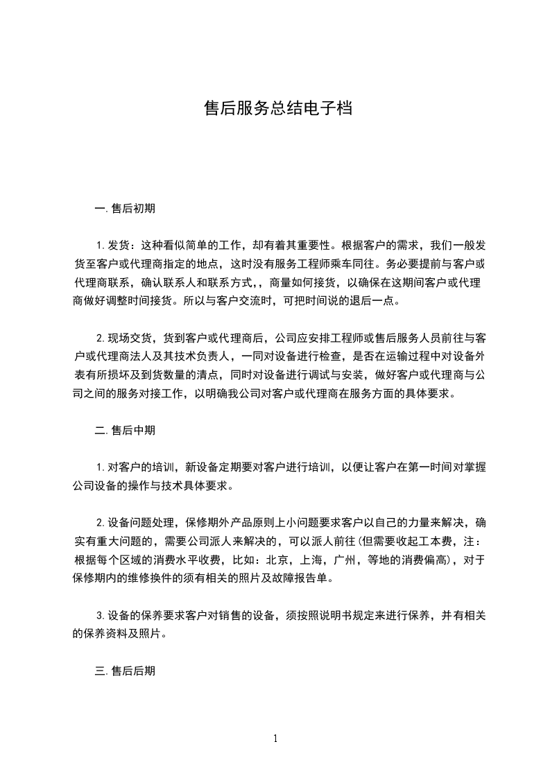 三、售后服务事项: