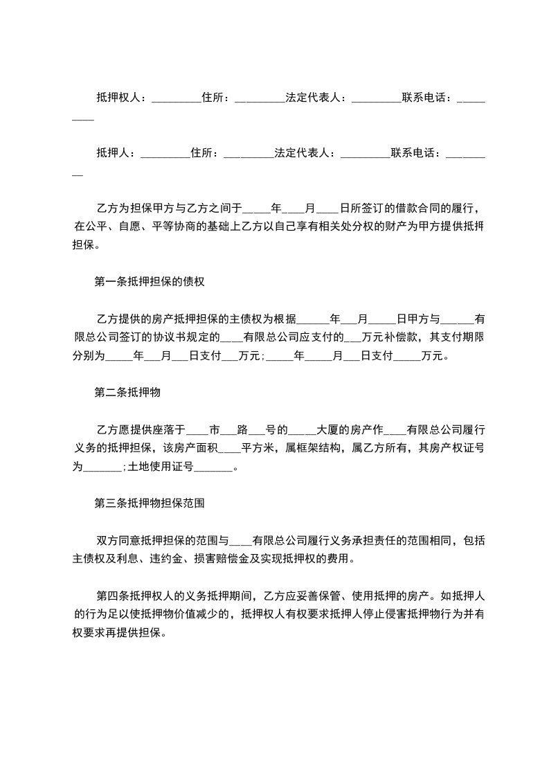 该房屋为:楼房___室___厅___卫,平房___间,建筑面积___平方米,使用面积___平方米,装修状况___,其他条件为___,该房屋设定抵押。