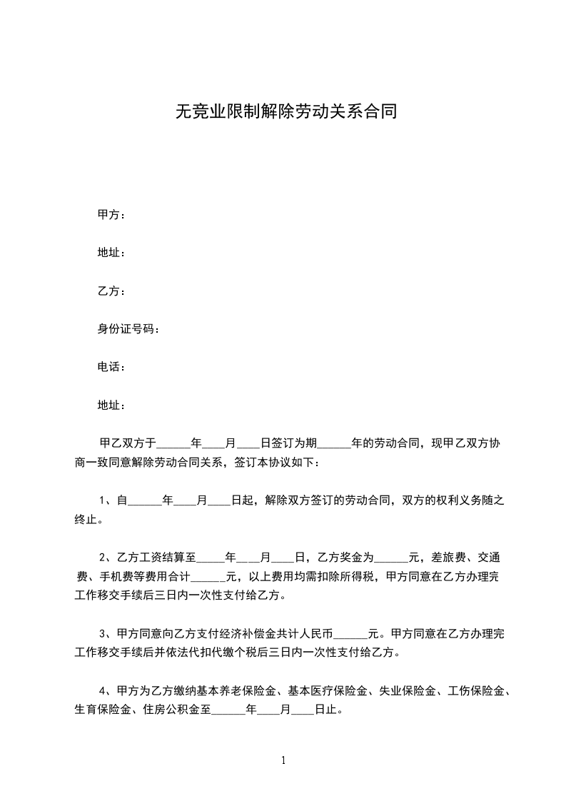 8、甲乙双方之间无任何竞业限制协议,合同解除后,乙方无需履行任何竞业限制义务,可自由就业。