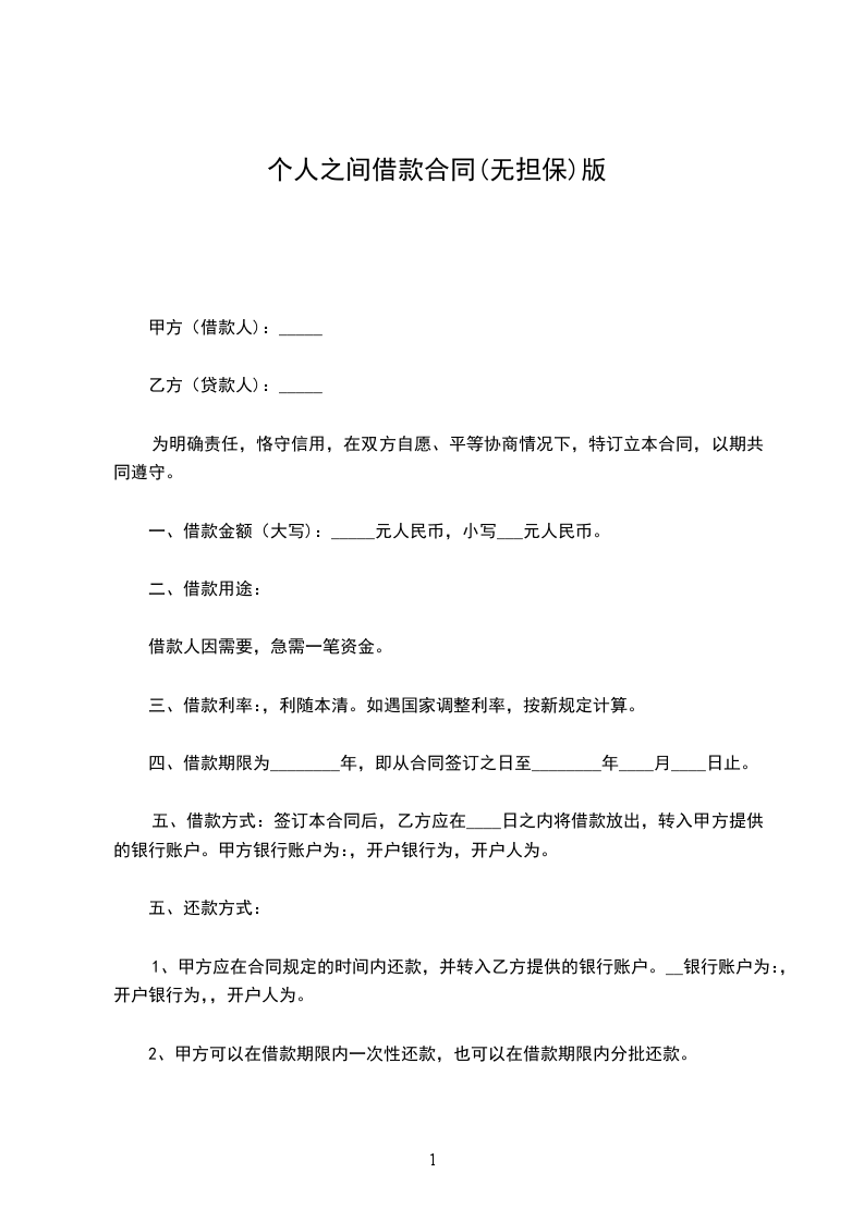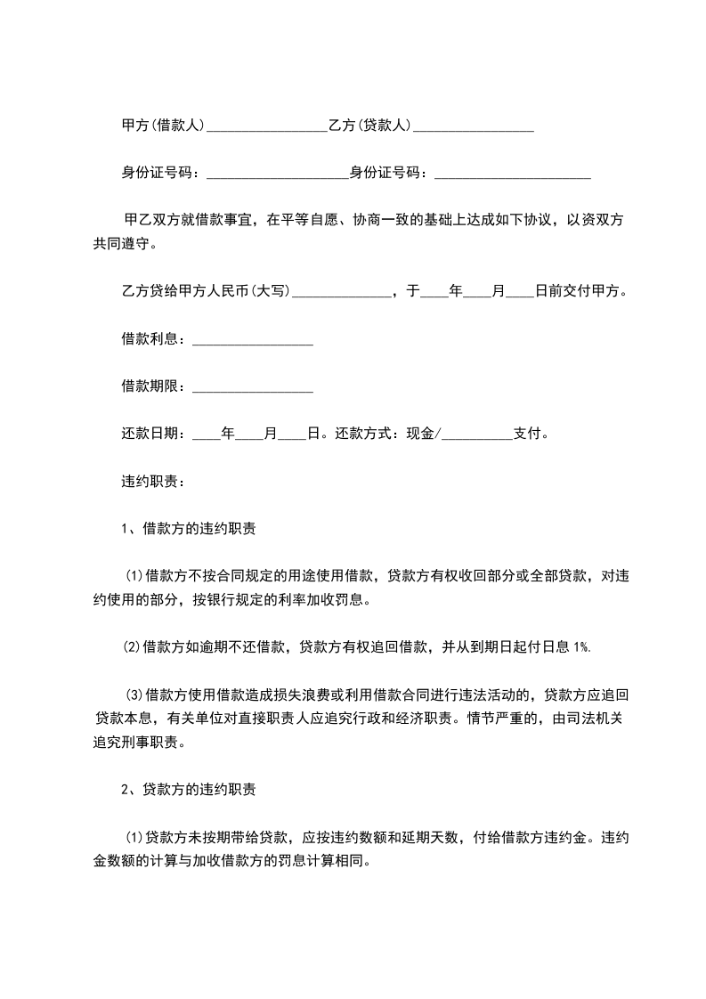甲方(借款人)_________________乙方(贷款人)_________________