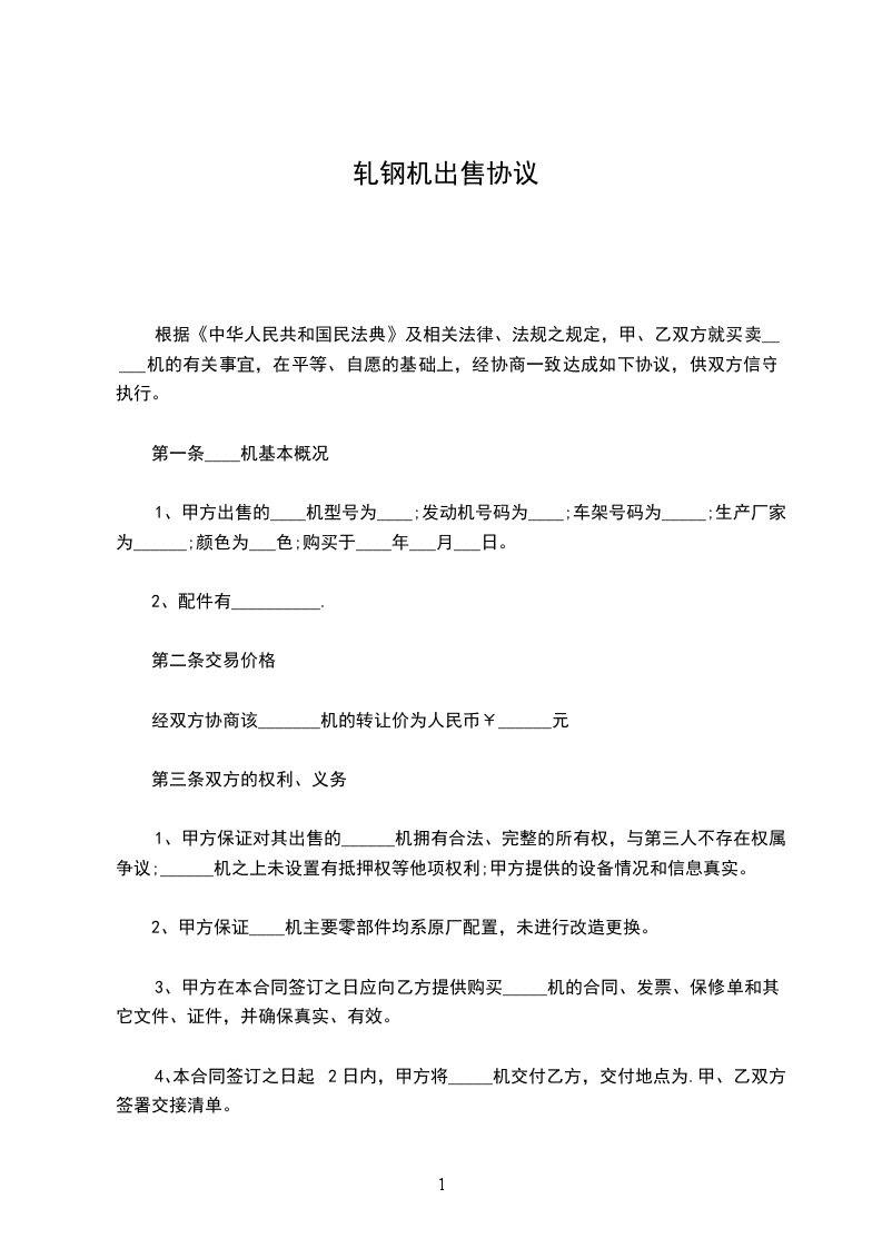 根据《中华人民共和国民法典》及相关法律、法规之规定,甲、乙双方就买卖_____机的有关事宜,在平等、自愿的基础上,经协商一致达成如下协议,供双方信守执行。