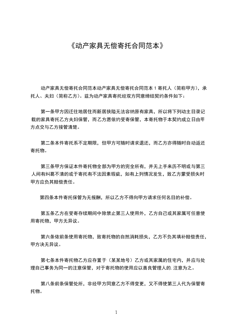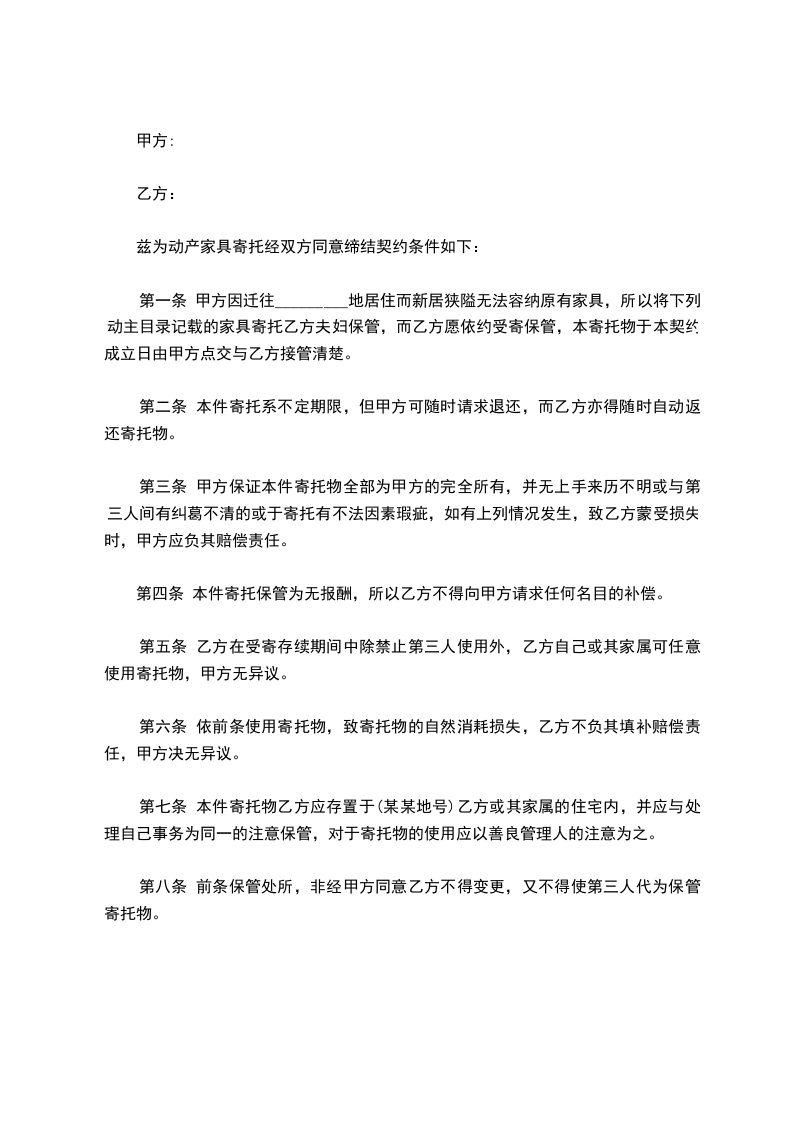 兹为动产家具寄托经双方同意缔结契约条件如下: