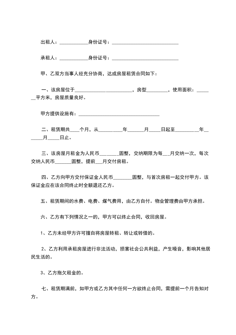 七、租赁期满前,如甲方或乙方其中任何一方欲终止合同,需提前一个月告知对方。