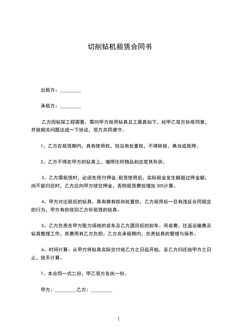 4、甲方对出租后的钻具,具有拥有权和处置权,乙方租用后一旦有违反合同规定的行为,甲方有权收回乙方所租赁的钻具。