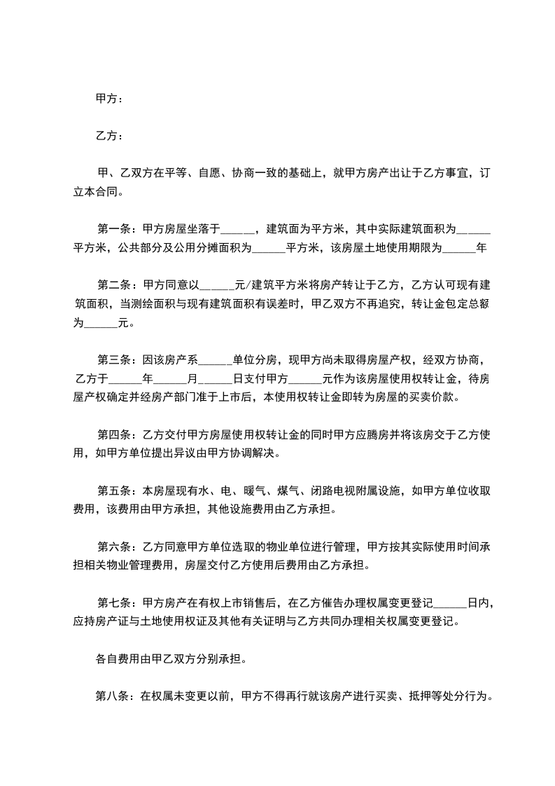 出售房屋的共有使用权证号:___________________。