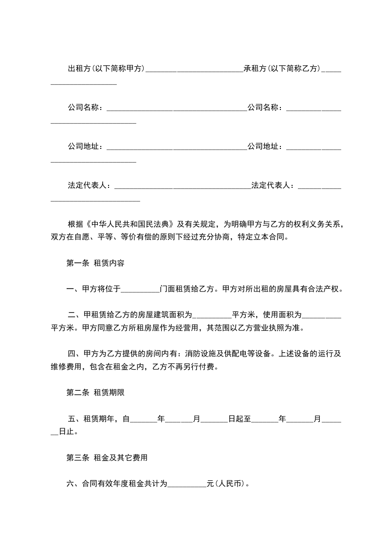 出租方出租的商铺坐落地址:_________号,建筑面积_________平方米。