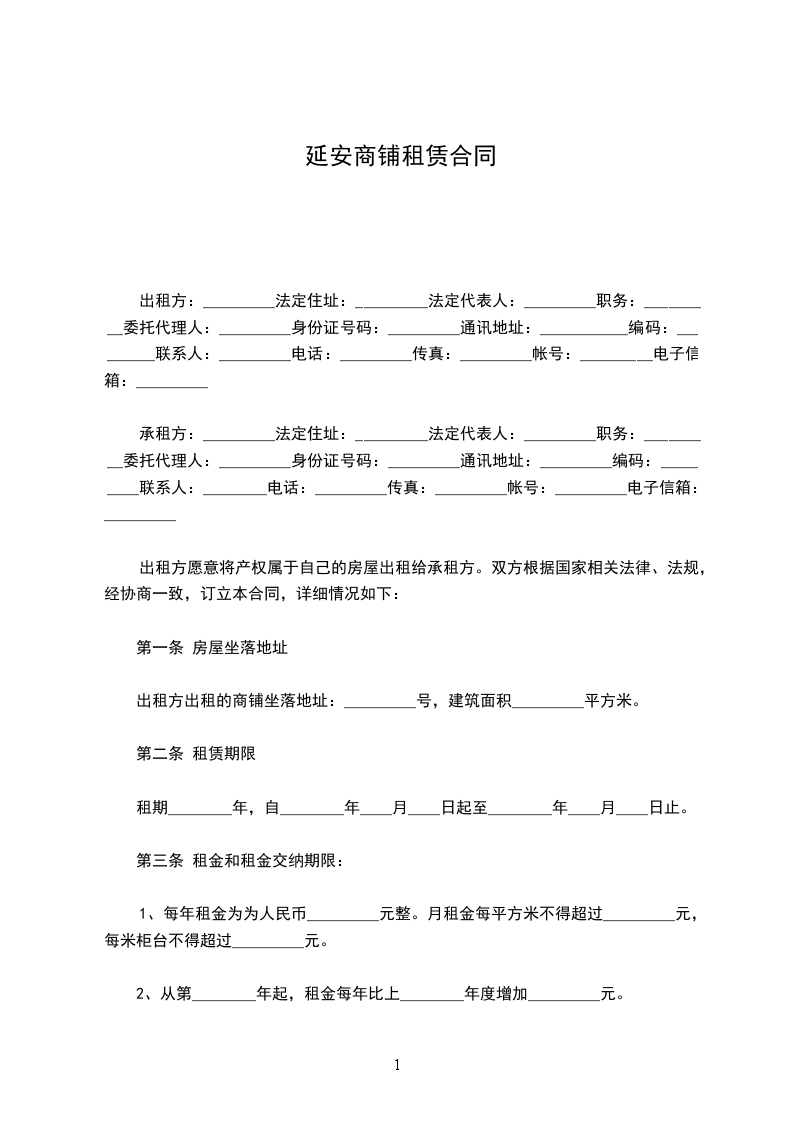 出租方:_________法定住址:_________法定代表人:_________职务:_________委托代理人:_________身份证号码:_________通讯地址:___________编码:_________联系人:_________电话:_________传真:_________帐号:_________电子信箱:_________