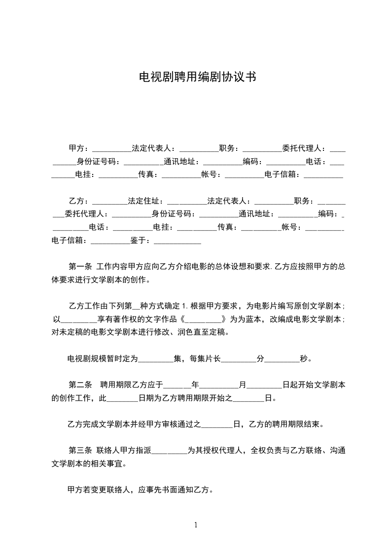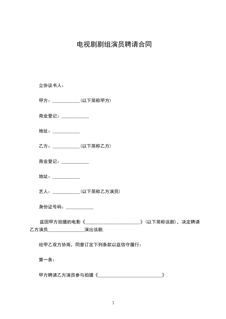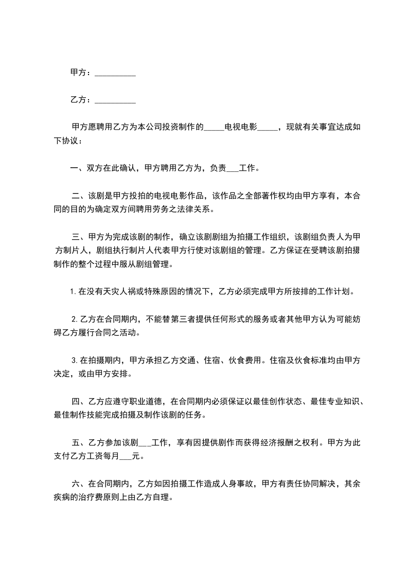 甲方愿聘用乙方为本公司投资制作的_____电视电影_____,现就有关事宜达成如下协议: