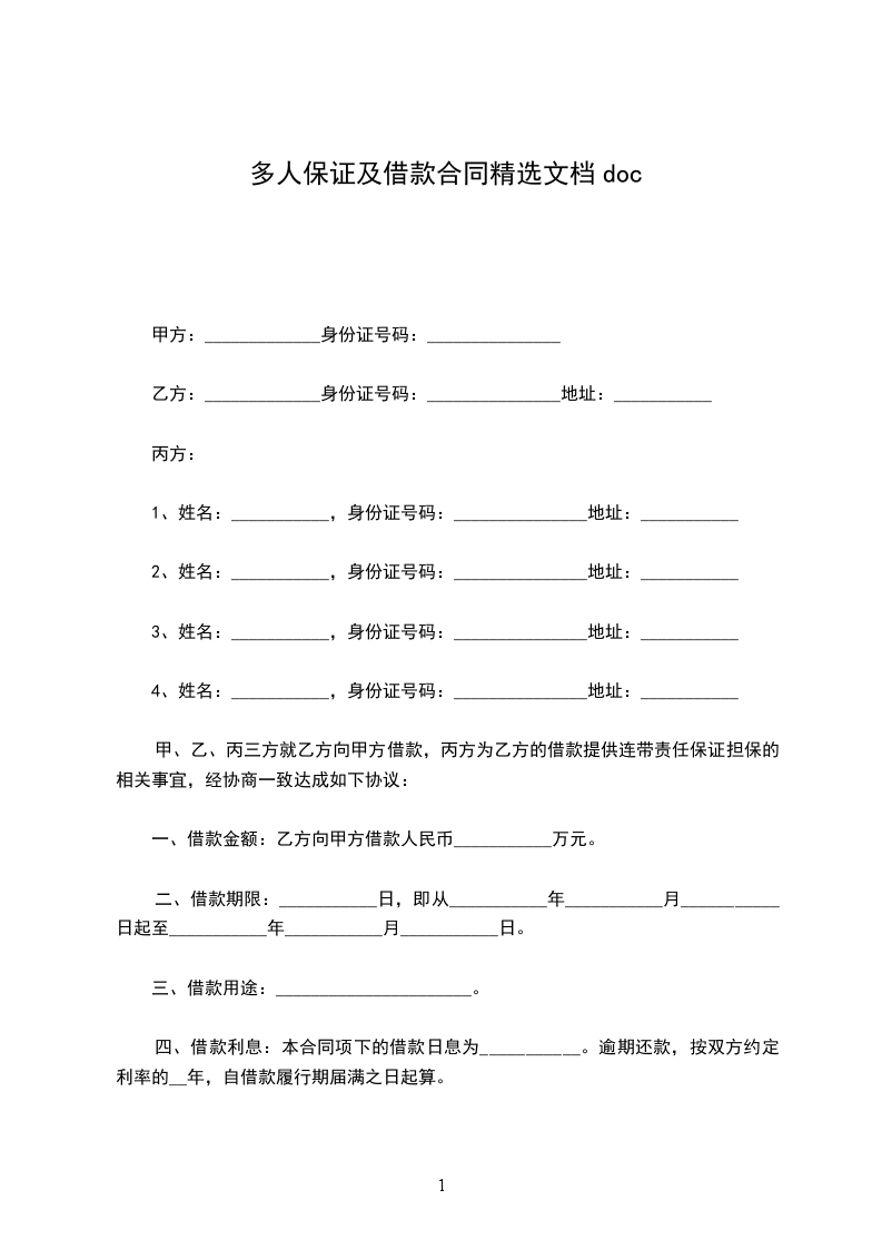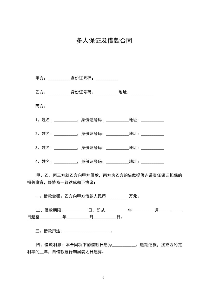 一、借款金额:乙方向甲方借款人民币___________万元。
