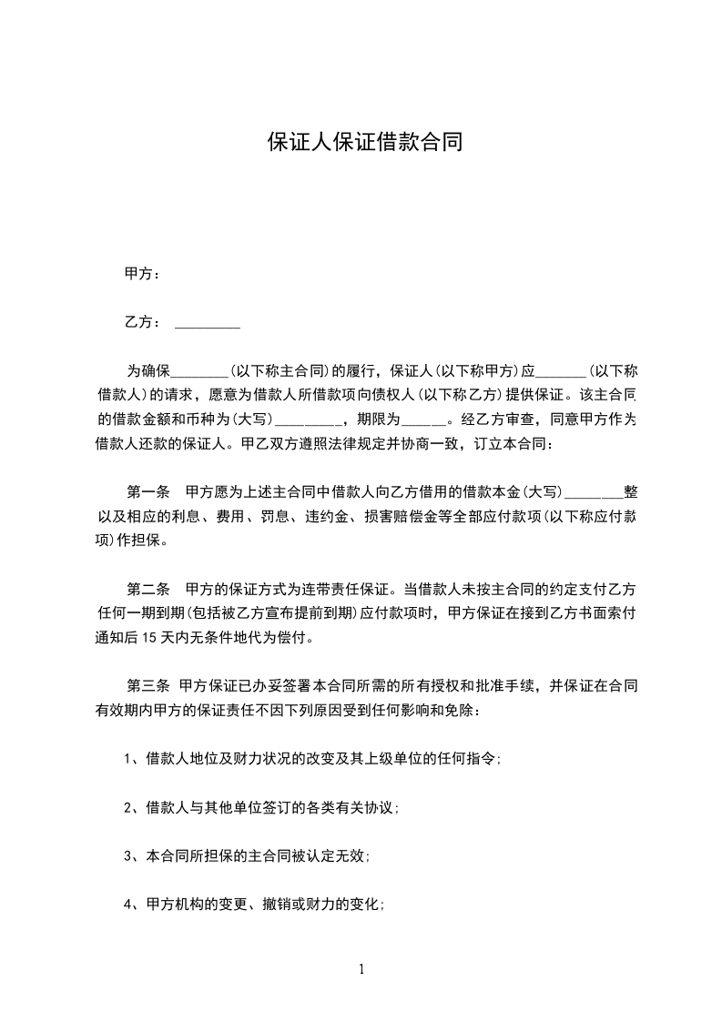 1、未经甲方书面同意,乙、丙方为第三方债务提供保证担保或以其资产为自身其他债务或第三人债务设定抵押、质押担保,可能影响其履行本协议项下债务的能力的;