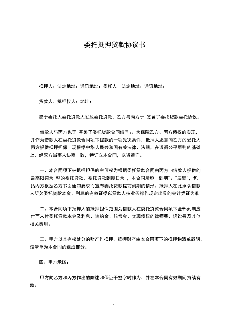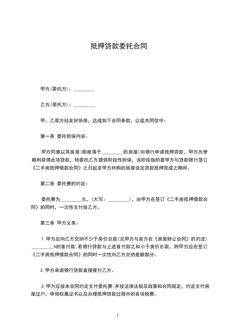 1、甲方将坐落于_________________的房屋委托乙方办理贷款,并保证提供的信息真实有效。产权清晰,无纠纷,无抵押。