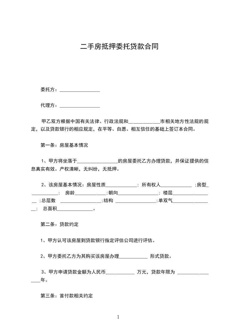 2、甲方委托乙方为其购买该房屋办理____________ 形式贷款。