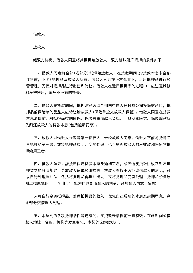 第二条:贷款约定