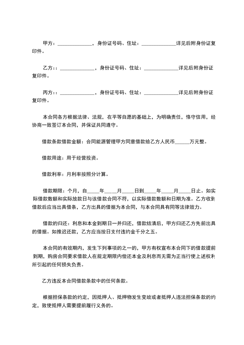 借款条款借款金额:合同能源管理甲方同意借款给乙方人民币______万元整。