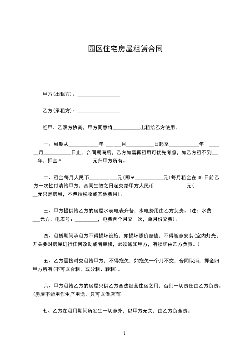 甲乙双方议定月租金________元,由乙方在____月____日交纳给甲方。
