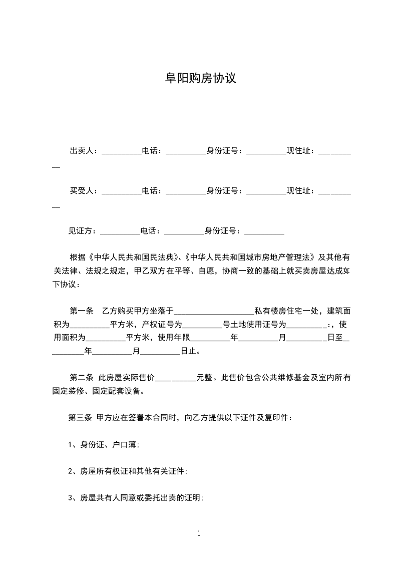 买受人:__________电话:__________身份证号:__________现住址:__________