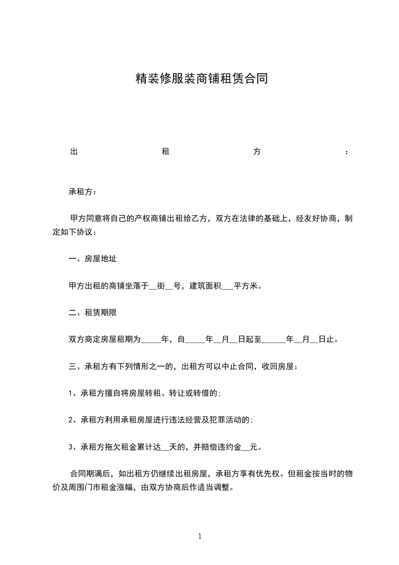 甲方出租的商铺坐落于__街__号,建筑面积___平方米。