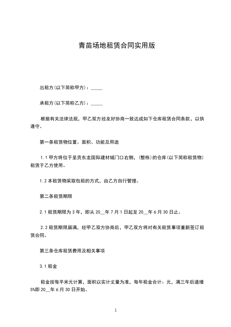 现有空闲土地一宗,对外招商,乙方愿意租赁,经甲、乙双方协商同意,签订本合同,具体条款列下: