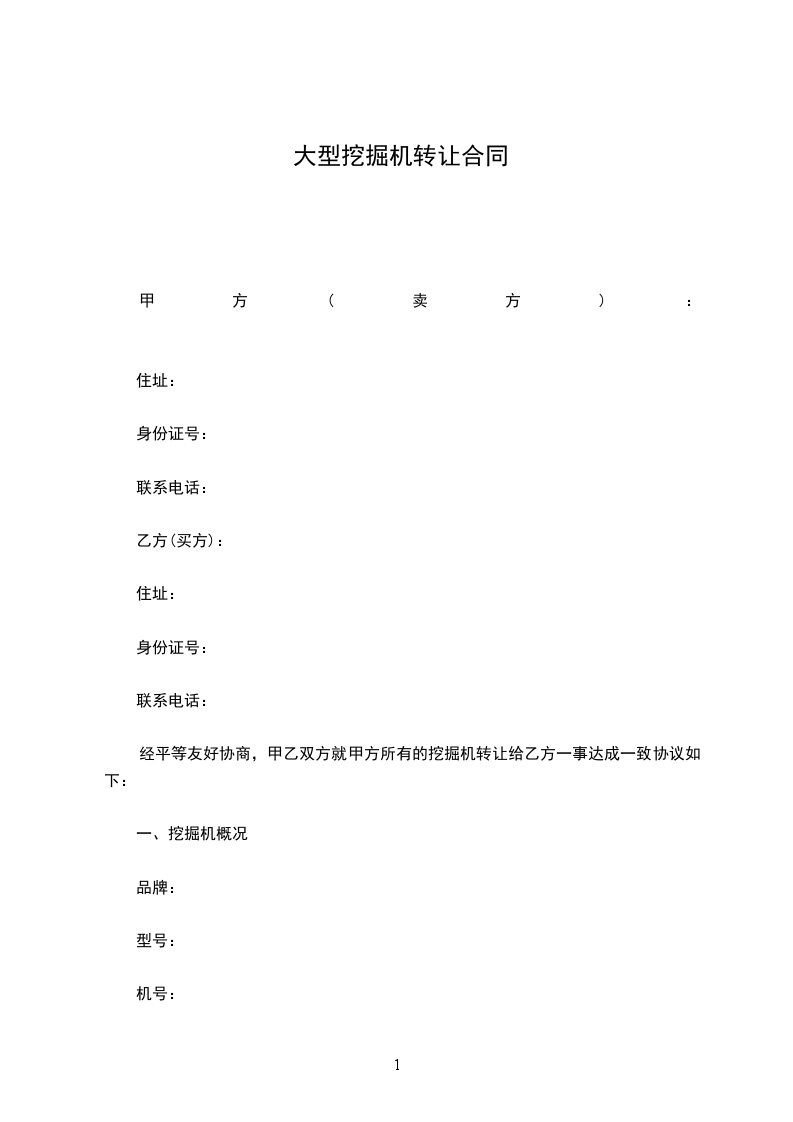 经平等友好协商,甲乙双方就甲方所有的挖掘机转让给乙方一事达成一致协议如下: