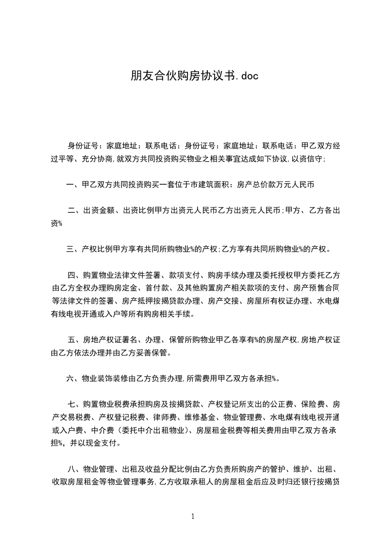 八、本合同一式两份,甲乙合伙两人各执一份。本合同自合伙双方两人签字、盖章之日生效。