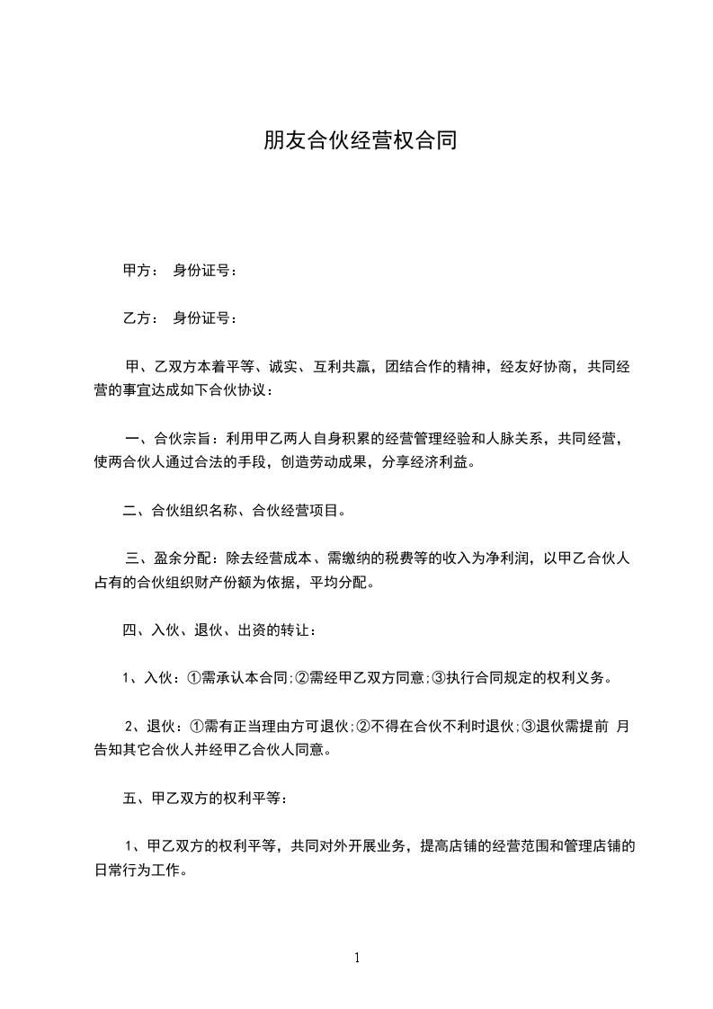 甲、乙双方本着平等、诚实、互利共羸,团结合作的精神,经友好协商,共同经营的事宜达成如下合伙协议: